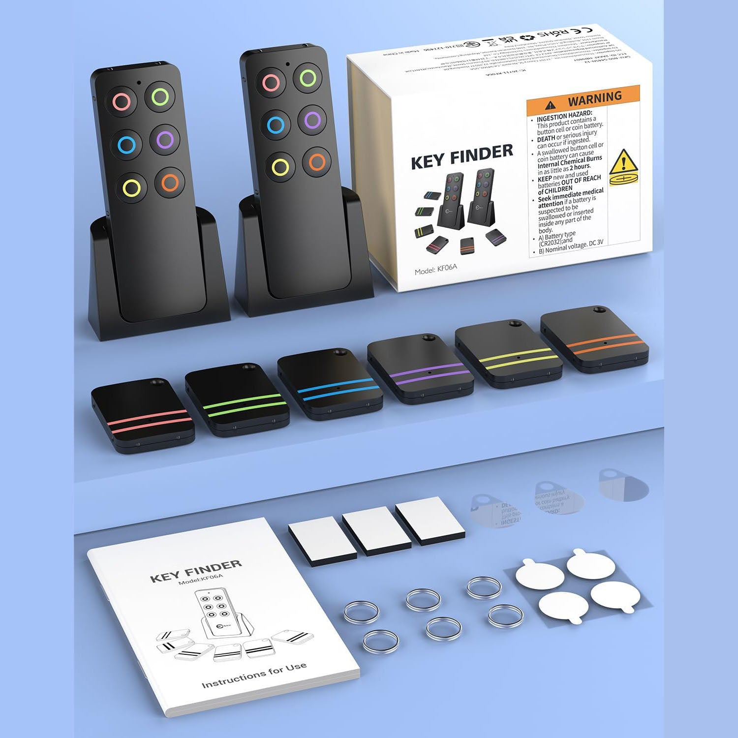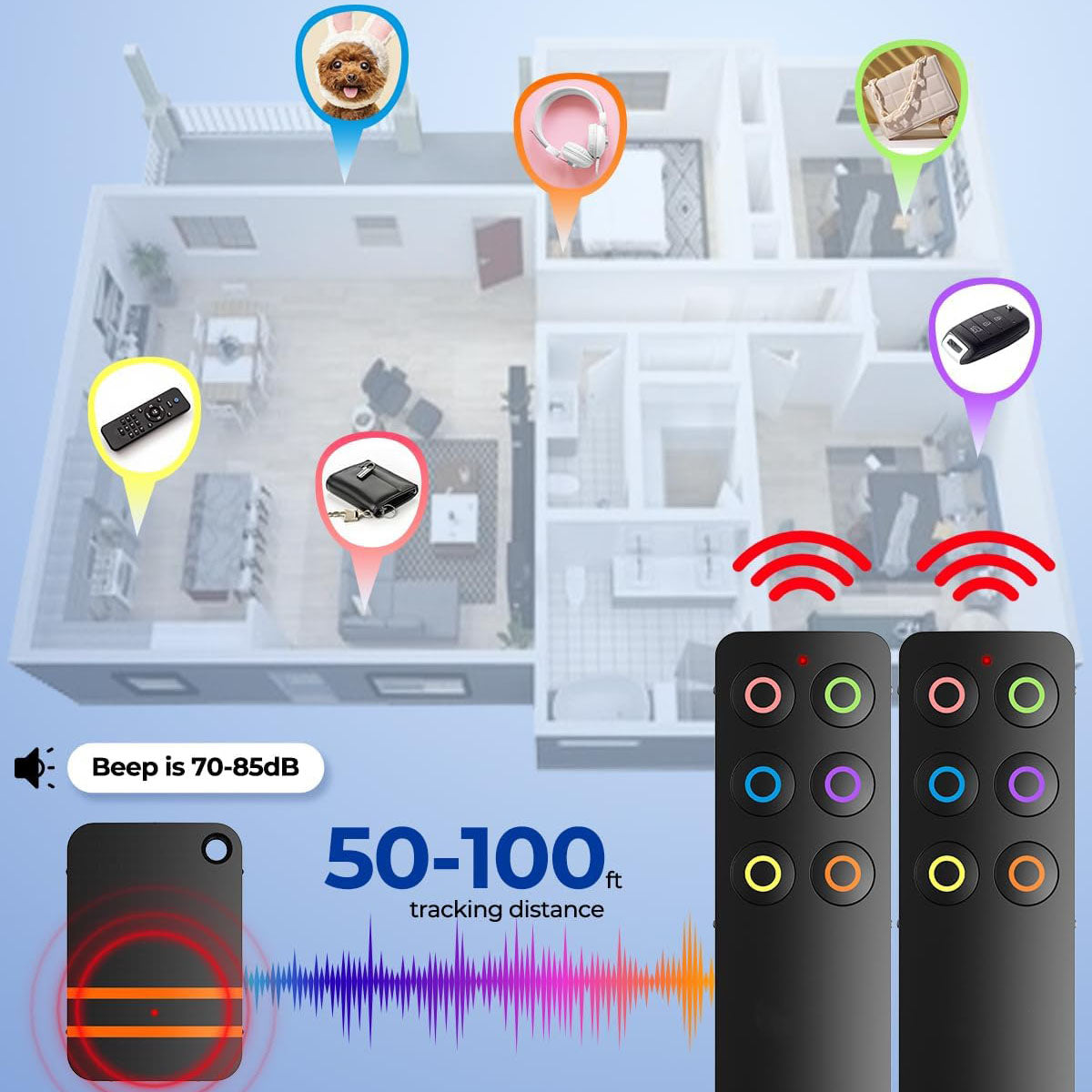 Each of the 6 receivers comes in different colors, and the included remote can pair with all of them. This makes it easy to organize and locate your items based on the color-coded buttons.